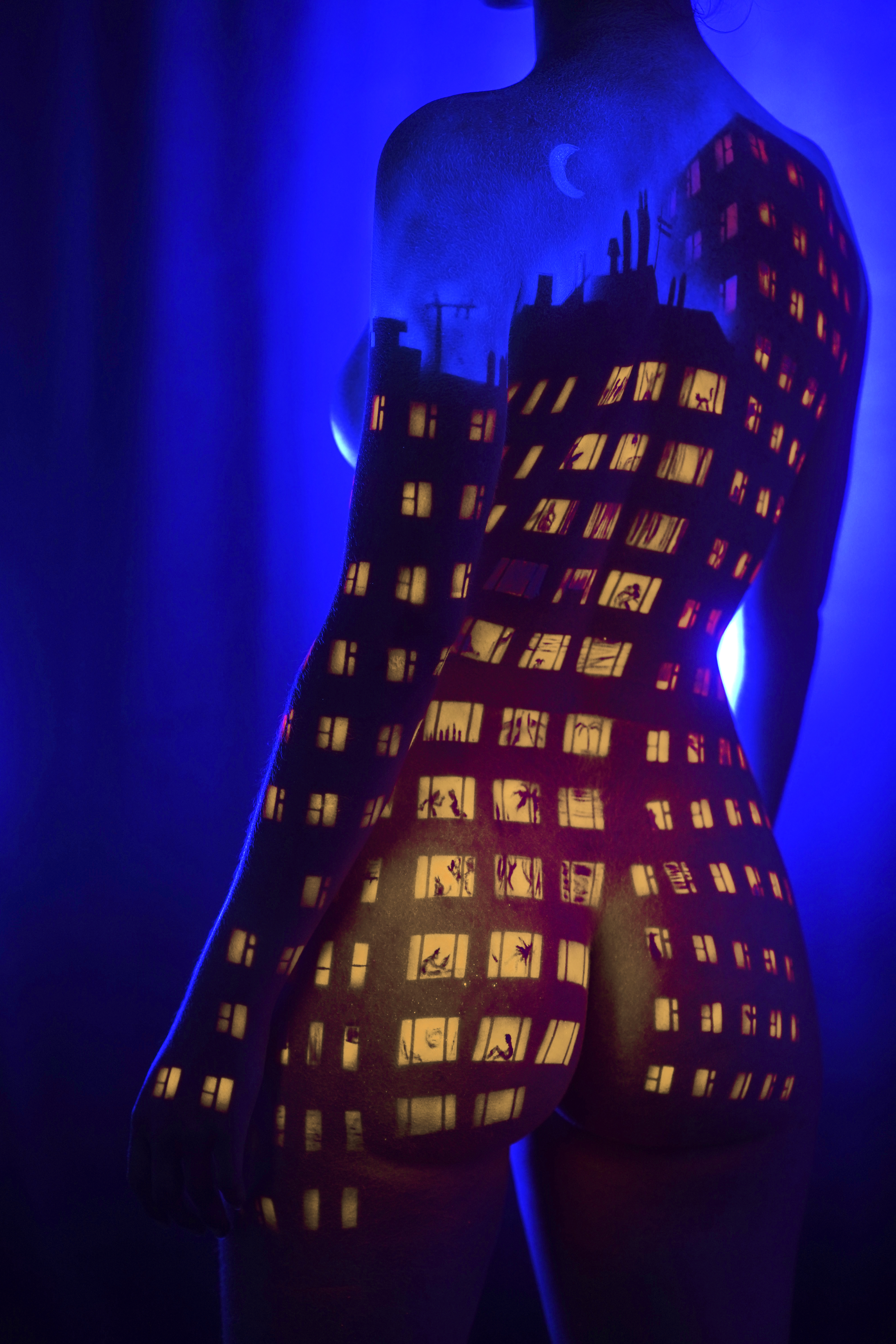 Myself modelling and being body painted by Paul Roustan.